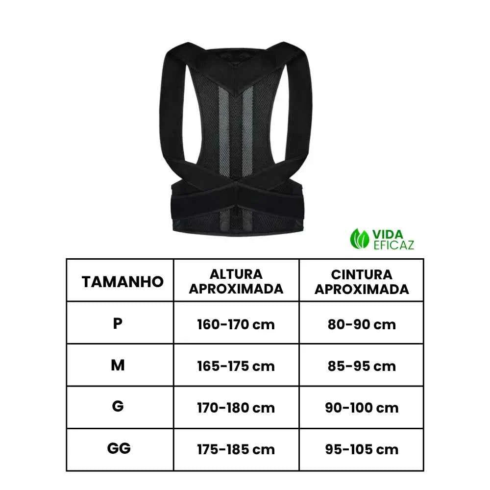 Trata-se de um colete ortopédico ajustável, desenvolvido com tecnologia de compressão inteligente e sustentação reforçada, ideal para alinhar a coluna cervical, torácica e lombar.