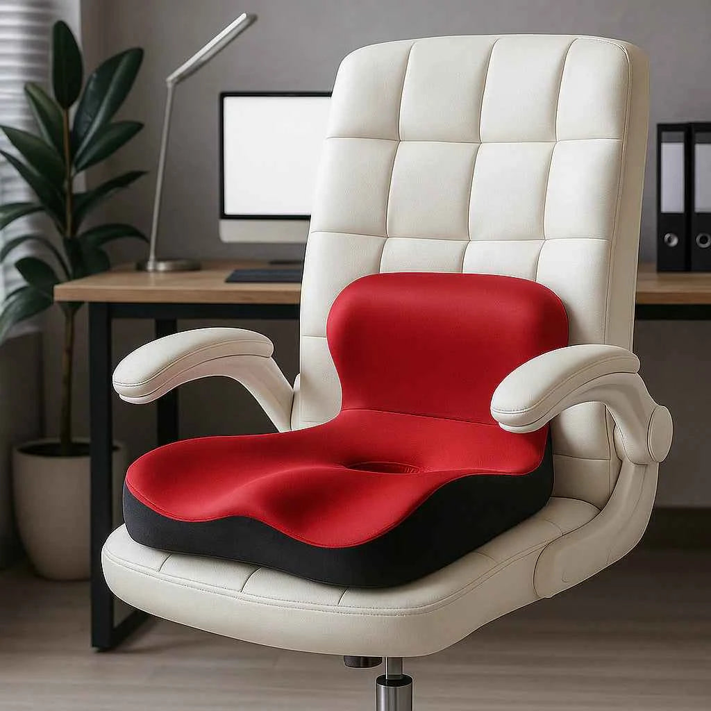 Ficar muitas horas sentado causa dor nas costas, pressão no cóccix, desconforto no quadril e formigamento nas pernas. Com o tempo, isso afeta sua postura, produtividade e qualidade de vida. A Almofada De Assento Ortopédico Com Espuma De Memória foi desenvolvida para reduzir a pressão ao sentar e proporcionar conforto prolongado no trabalho, estudo ou direção.