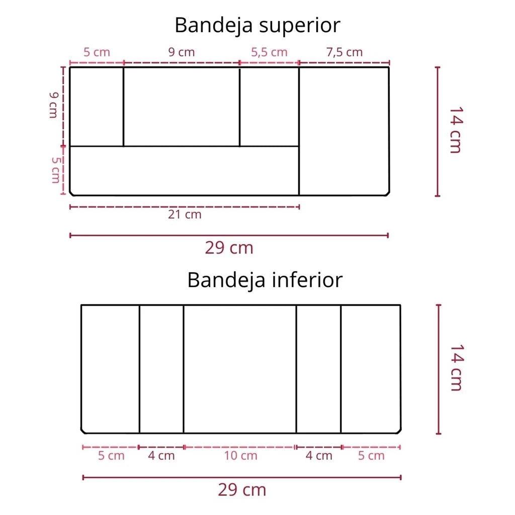 Estrutura interna: 2 bandejas com divisórias