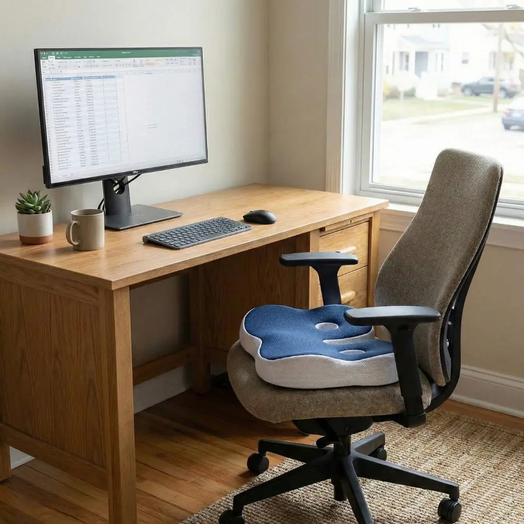 Dor no cóccix ao sentar é mais comum do que parece. Ficar horas na cadeira pode gerar pressão intensa na base da coluna, desconforto lombar e má postura. A Almofada de Assento Ortopédico Para Cóccix foi desenvolvida para reduzir a sobrecarga nessa região e proporcionar mais conforto no dia a dia.