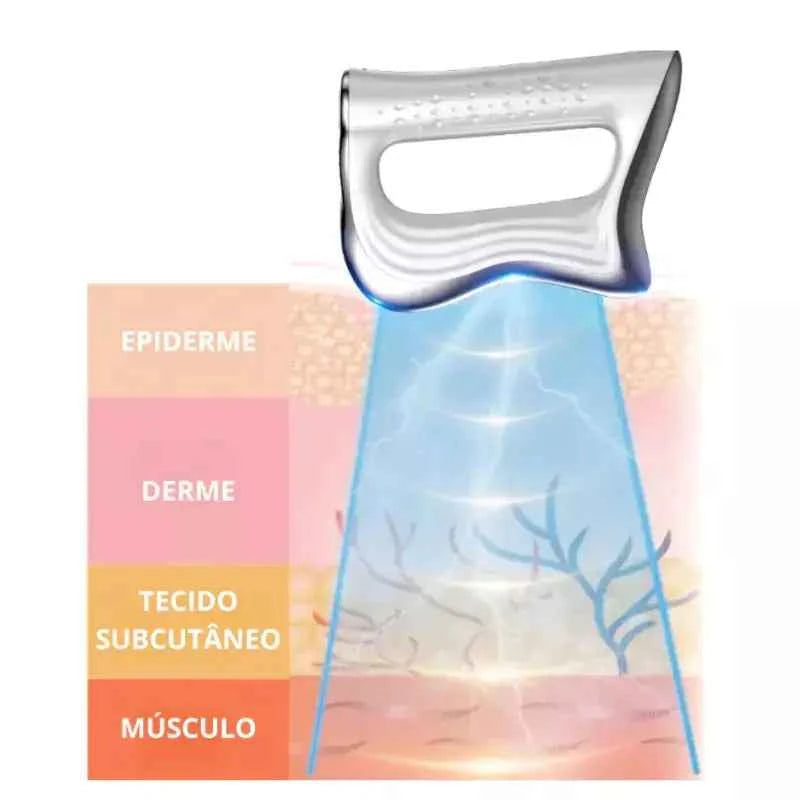 O formato ergonômico permite aplicar o aparelho em diferentes regiões do corpo com mais conforto e controle. Isso facilita o uso em casa, na academia ou em viagens, sem complicação.