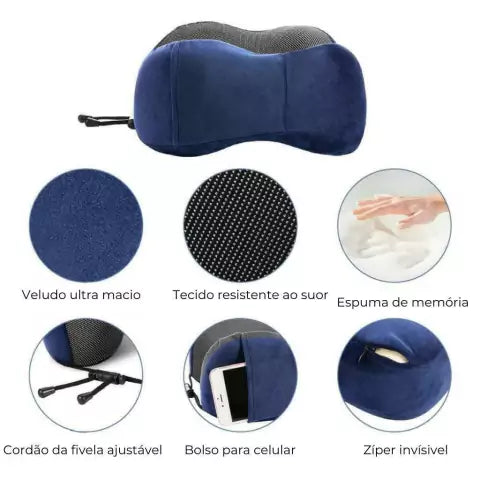 Almofada de Pescoço Para Viagem Modelo Premium com Suporte Cervical Ergonômico