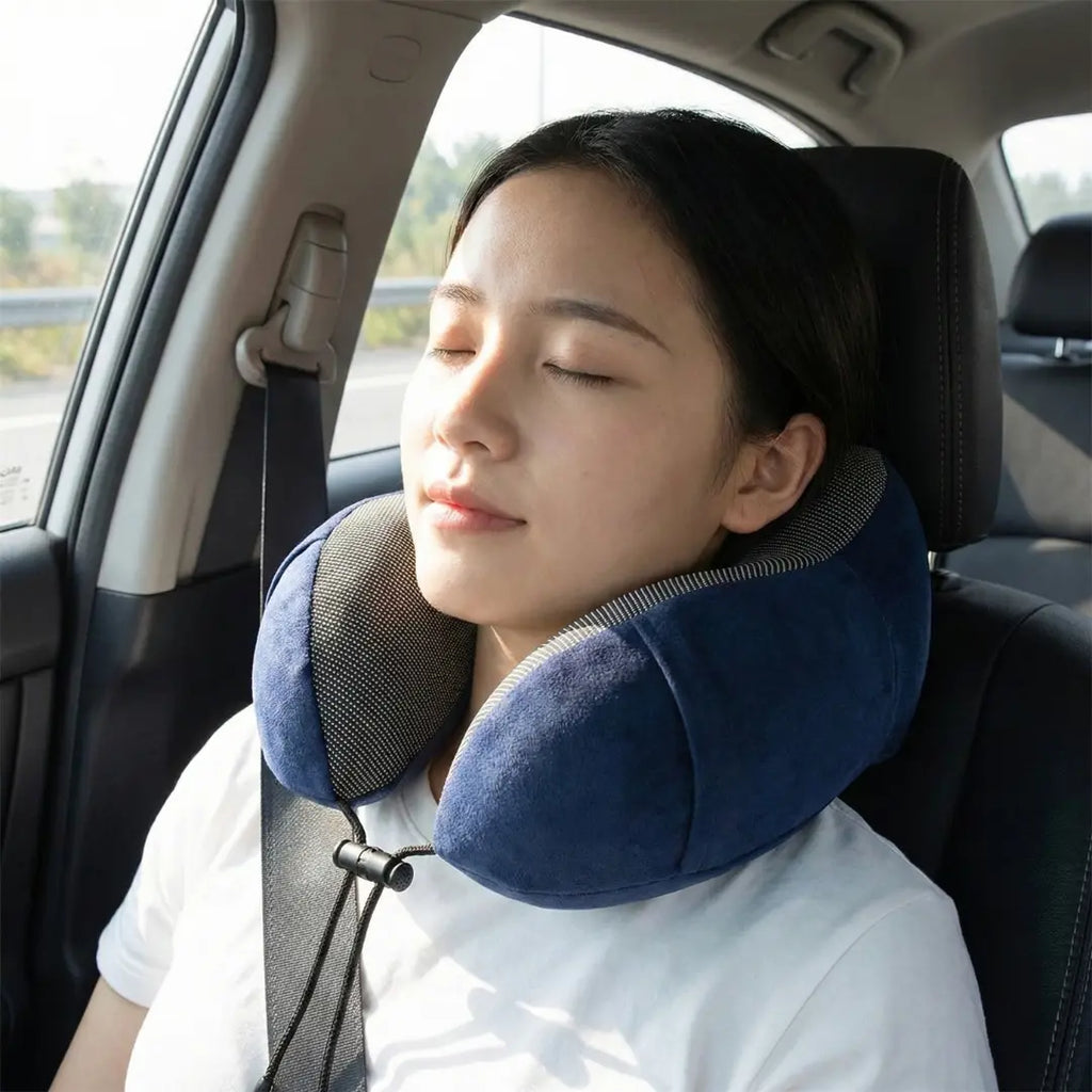O formato ergonômico envolve o pescoço, mantendo a cabeça estável e reduzindo movimentos bruscos durante o sono.